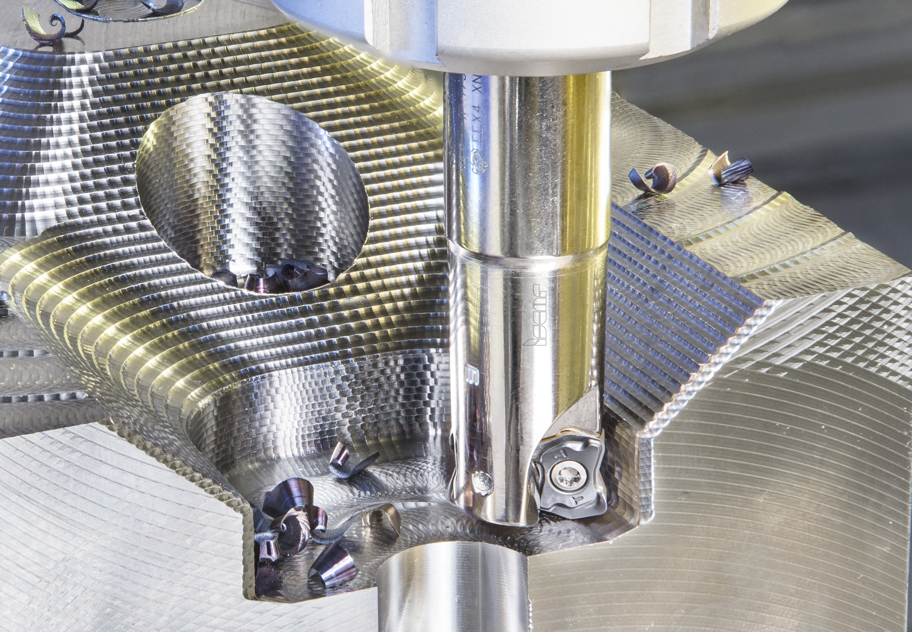 Fig. 2- Indexable milling cutters for machining aluminum at extremely high cutting speeds are specifically engineered to eliminate insert radial displacement, which may occur due to the high centrifugal forces.